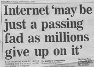 ARPANET delivered its first message from one computer to another on October 29, 1969 and changed over to TCP/IP on January 1, 1983, which is now considered the official birthday of the internet. The worldwide web, however, did not become publicly available until August 6, 1991. Five years later, in 1996, only 16% of US homes had internet access. Internet access would not hit the 75% penetration threshold until 2007, the year the iPhone was released (and was predicted to be “passé within 3 months”)