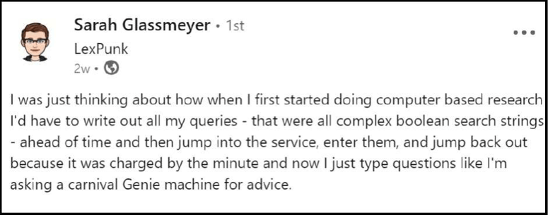 I am confident there will be many worthwhile LLM-powered applications in legal. Parallel Search, AllSearch, and CoCounsel are evidence of that. I am just as confident there will be many less-than-worthwhile applications riding the LLM hype train. I am certain distinguishing the former from the latter will require work (choice overload will increase, as will the premium on trust). I am equally certain that even good tools will be misapplied because of failures to do the prerequisite process mapping, stakeholder engagement, future-state planning, and requirements gathering, not to mention process re-engineering, implementation, integrations, knowledge management, change management, and training. LLMs will change much. But LLMs will not change everything, and the danger of automating dysfunction remains high.