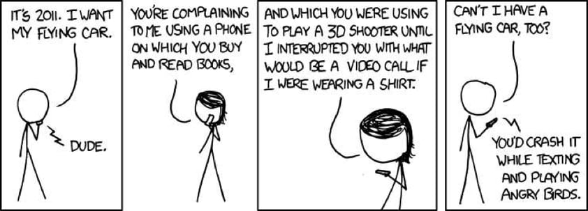 Pocket-sized computers that were once science fiction are now a necessity. But we are predisposed to focus on science that remains fiction. Where is my flying car?