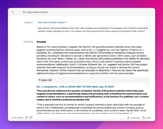 LLM-powered applications are effective in legal. Casetext began experimenting with LLMs years ago to augment the editorial process some of us still call "Shepardizing" despite that trademark belonging to our friends at LexisNexis (another bias/brag alert: Casetext is also a LexFusion member).